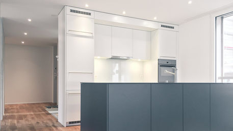 Viel Lebensqualität bringt auch der eher gehobene Ausbaustandard: Für Küchen, Badezimmer und Bodenbeläge sind grosszügige Budgets eingeplant. Die 3½- und 4½-Zimmer-Wohnungen sind mit einem Bad mit Dusche und einem separaten Gäste-WC ausgestattet. Ausserdem verfügt jede Einheit über eine gedeckte Loggia. Zu den drei Wohnungen der Attikageschosse gehören zusätzlich je zwei Aussenterrassen – die kleine mit gegen 20 m2, die grosse mit 95 bis 117 m2. Die Wohnungen A1 und A3 haben einen Gartensitzplatz mit bis zu 12 m2.